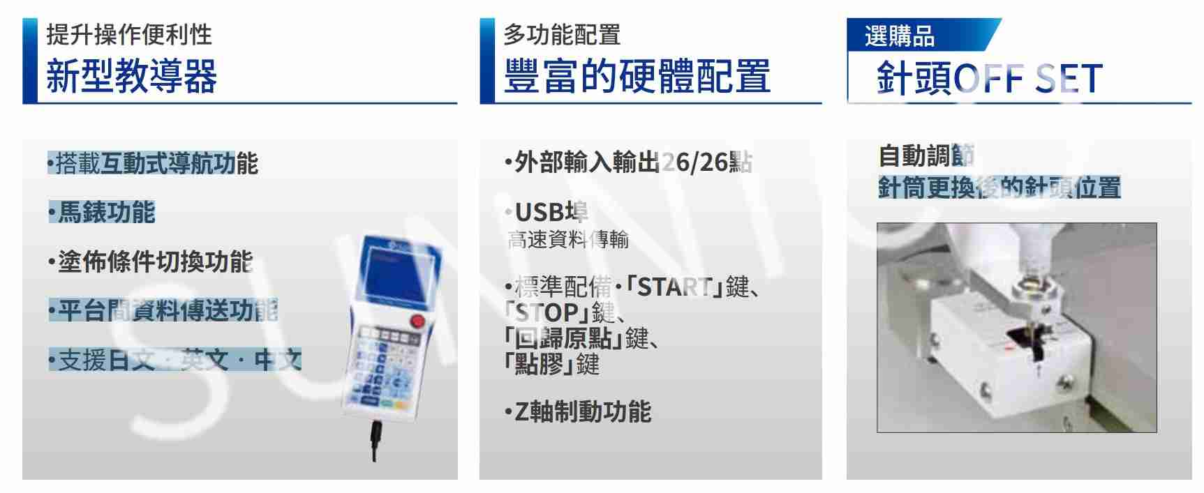 高精密點(diǎn)膠機(jī) 非接觸式噴射點(diǎn)膠機(jī) 高性能(定量)螺桿式點(diǎn)膠機(jī) 容積定量式數(shù)位點(diǎn)膠控制器 桌上型視覺(jué)點(diǎn)膠平臺(tái) 桌上型涂布三軸工作平臺(tái) 數(shù)位膠閥控制器 精密膠閥